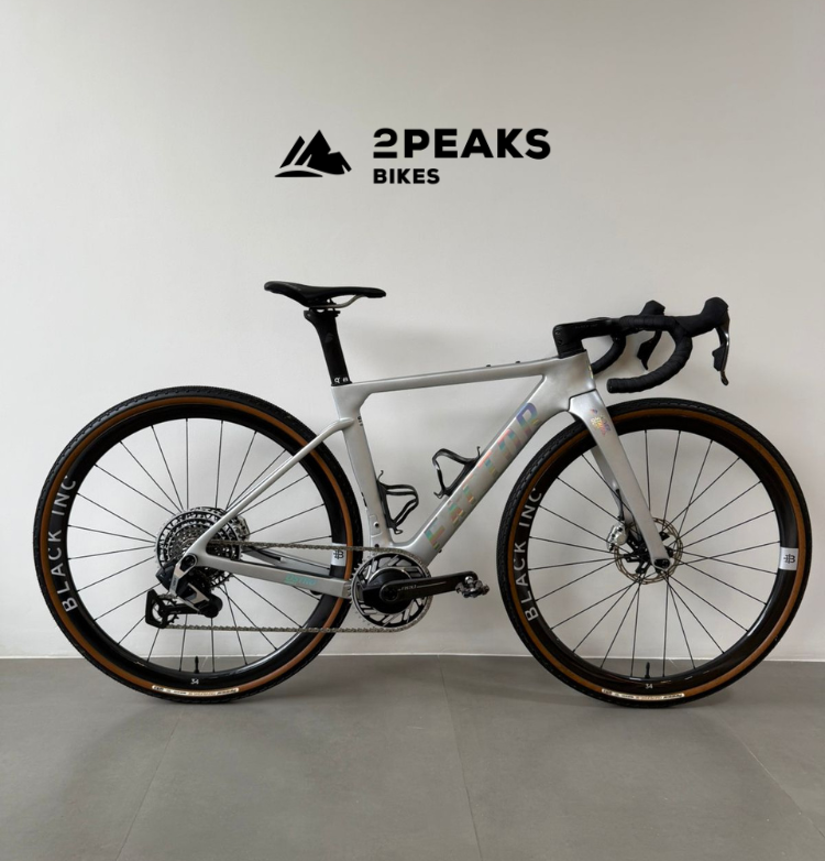 FACTOR OSTRO GRAVEL 49 PRATA PRISMA COM SRAM RED AXS XPLR E RODAS BLACK INC 34 (SEMINOVA)